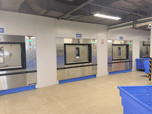 海獅目前為華西天府醫(yī)院配置了洗衣龍、衛(wèi)生隔離式洗滌脫水機(jī)、全自動(dòng)烘干機(jī)、四工位展布機(jī)、自動(dòng)熨平機(jī)&高速雙面燙平機(jī)、四輥熨平機(jī)、全自動(dòng)高速折疊機(jī)、堆碼機(jī)、烘干龍、純蒸汽發(fā)生器、脈動(dòng)真空滅菌器、純水制備系統(tǒng)等全套洗消設(shè)備。并確保所有設(shè)備嚴(yán)格按照 WST367-2012《醫(yī)療機(jī)構(gòu)消毒技術(shù)規(guī)范》、WS/T508《醫(yī)院醫(yī)用織物洗滌消毒技術(shù)規(guī)范》等標(biāo)準(zhǔn)規(guī)范的要求,設(shè)立“兩區(qū)三通道”(即潔凈區(qū)、臟污區(qū)、工作人員通道、醫(yī)用織物接收專(zhuān)用通道、醫(yī)用織物發(fā)放專(zhuān)用通道),做到工作流程由污到潔,不交叉、不逆行。并在潔凈區(qū)和污染區(qū)之間設(shè)置完全隔離屏障,實(shí)施負(fù)空氣壓阻斷,使?jié)嵨蹆蓞^(qū)之間實(shí)現(xiàn)雙通道的全封閉式實(shí)質(zhì)性隔斷,空氣不對(duì)流。