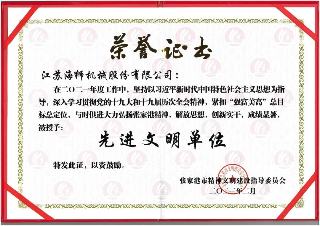 公司榮獲2021年度張家港市先進(jìn)文明單位。
